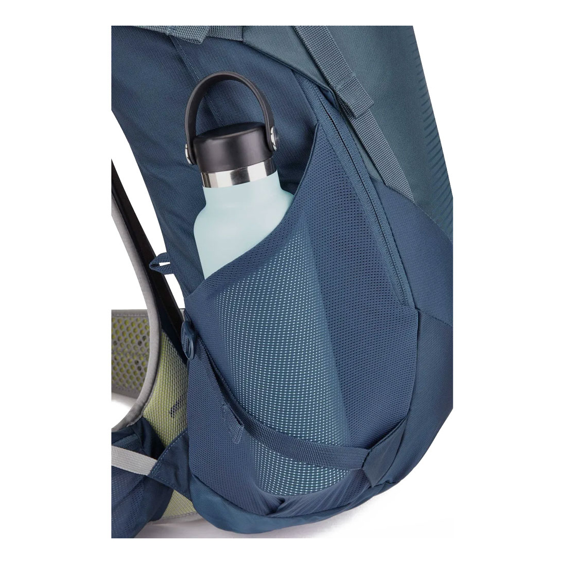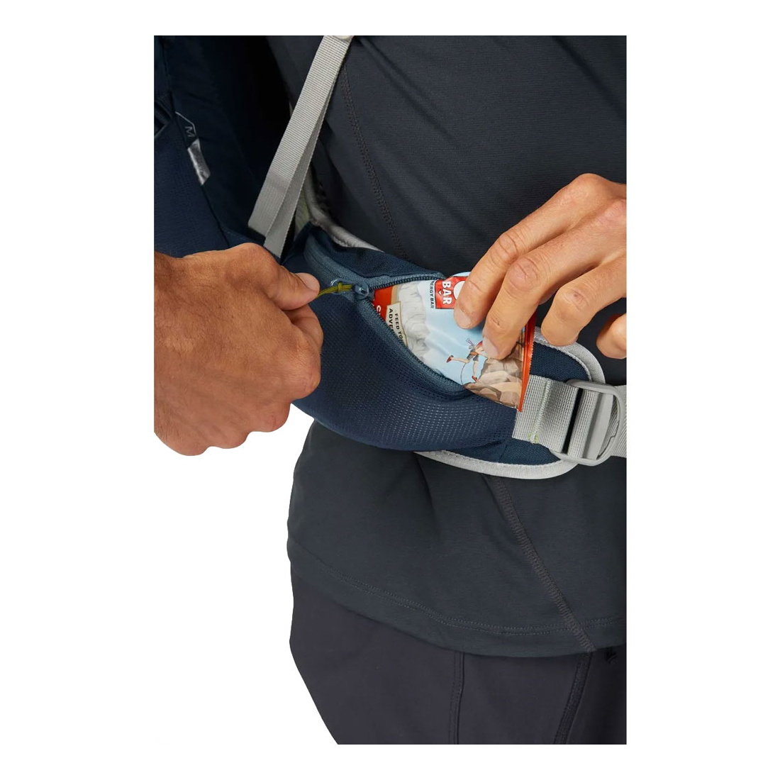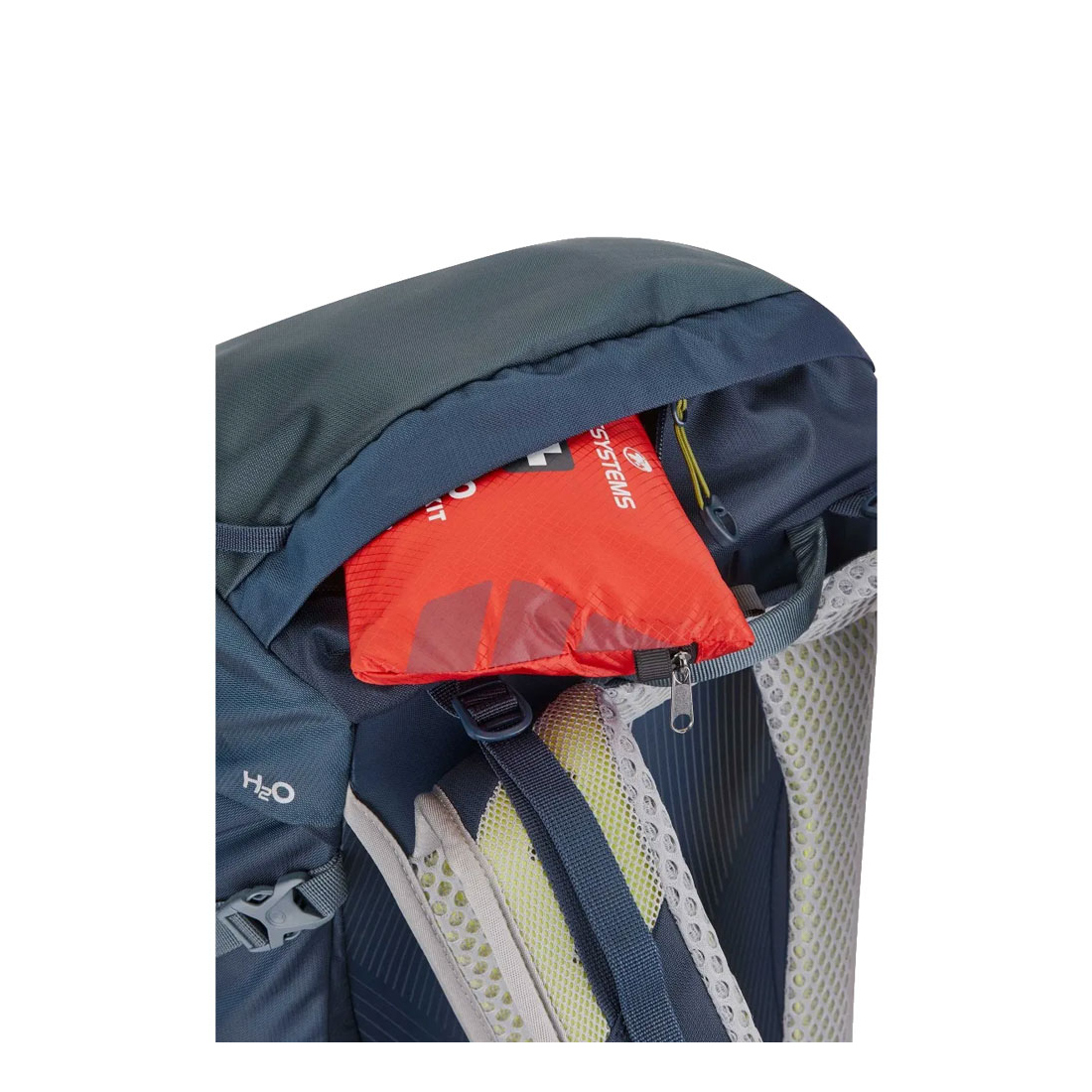 Η εφαρμογή ρυθμίζεται εύκολα μέσω του εργονομικού ιμάντα μέσης με σύστημα “forward pull”, διατηρώντας σταθερότητα ακόμη και σε δύσβατα μονοπάτια ή βραχώδεις κορυφογραμμές. Το σακίδιο είναι συμβατό με ασκό ενυδάτωσης 3 λίτρων και διαθέτει ελαστικές πλαϊνές διχτυωτές τσέπες για υδροδοχεία, ώστε να παραμένετε ενυδατωμένοι ακόμη και στις πιο ζεστές ημέρες.