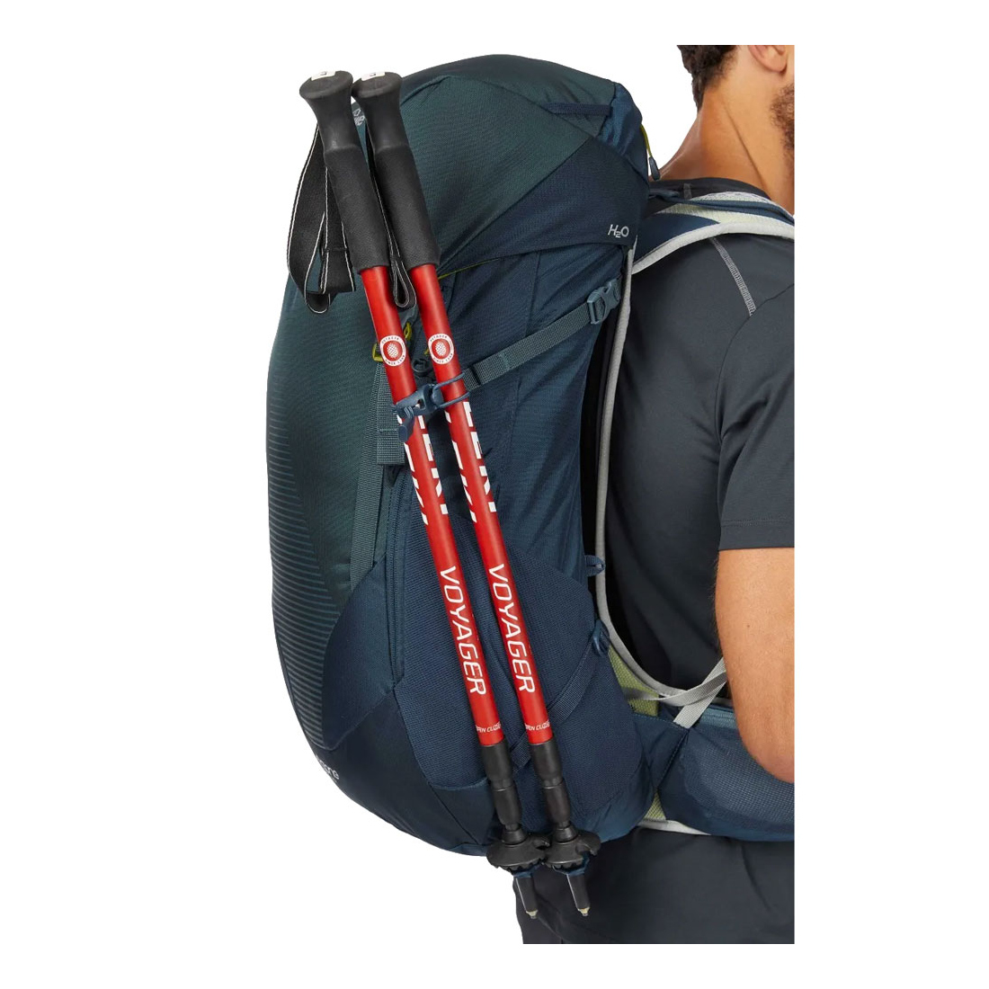 Οι τσέπες μέσης προσφέρουν γρήγορη πρόσβαση σε σνακ ή πυξίδα, ενώ η εσωτερική τσέπη κάτω από το καπάκι είναι ιδανική για πολύτιμα αντικείμενα. Οι επεκτεινόμενες πλαϊνές τσέπες προσφέρουν επιπλέον χώρο για ένα καπέλο ή ένα ελαφρύ ρούχο, ενώ τα σημεία πρόσδεσης TipGripper και το ελαστικό σύστημα συγκράτησης επιτρέπουν την ασφαλή μεταφορά μπατόν.