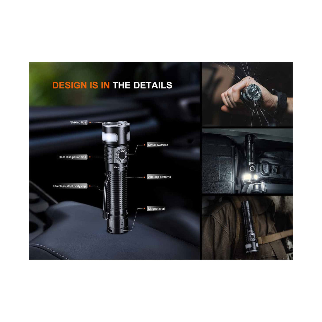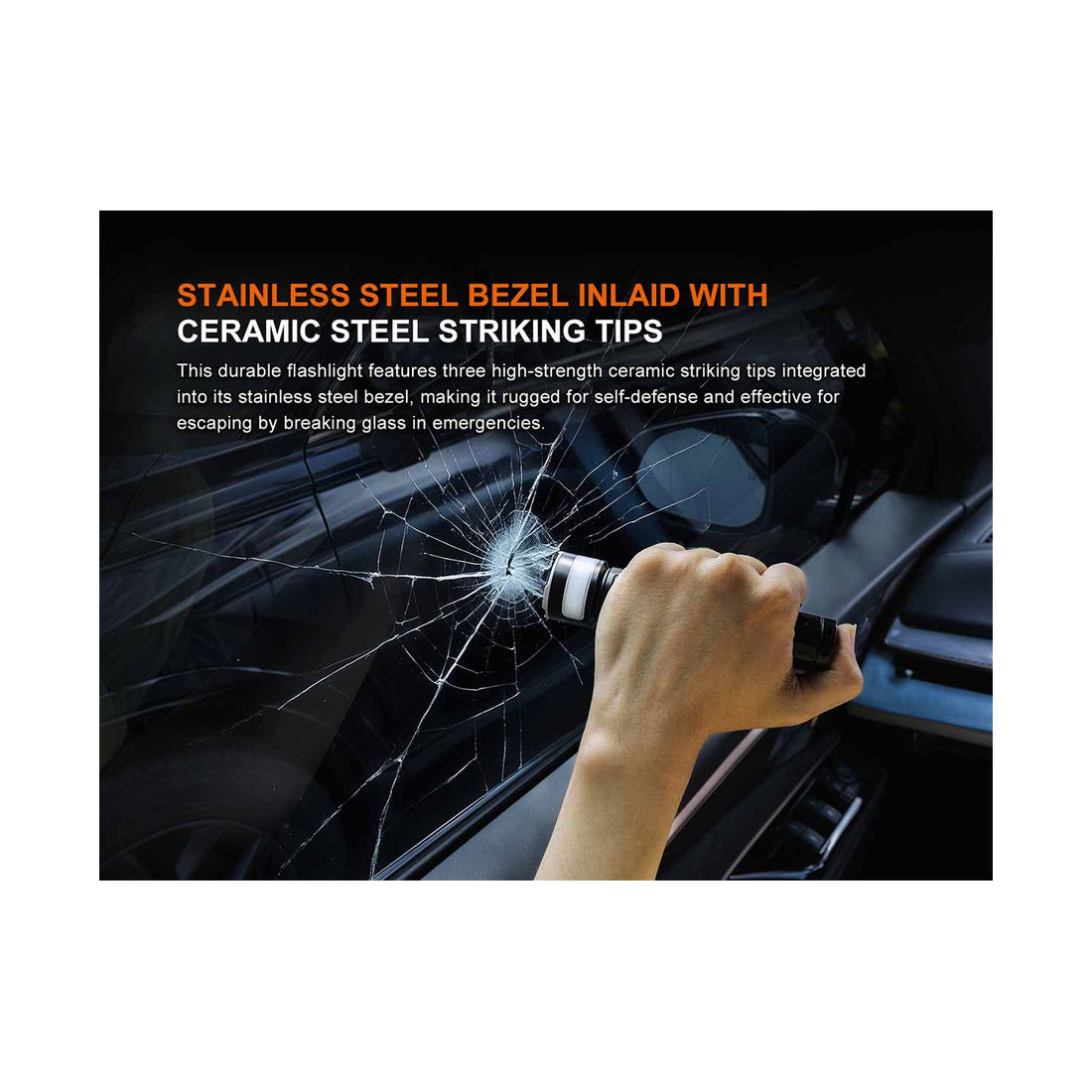 Πέρα από τον φωτισμό, ο φακός είναι πλήρως έτοιμος για καταστάσεις έκτακτης ανάγκης, με λειτουργίες strobe και SOS, καθώς και ακίδες θραύσης γυαλιού. Χάρη στη μαγνητική ουρά, μπορεί να στερεωθεί σε μεταλλικές επιφάνειες για χρήση χωρίς χέρια. Ο Fenix LD35R δεν είναι απλώς ένας φακός — είναι ένα πολυεργαλείο φωτισμού, έτοιμο για κάθε πρόκληση.