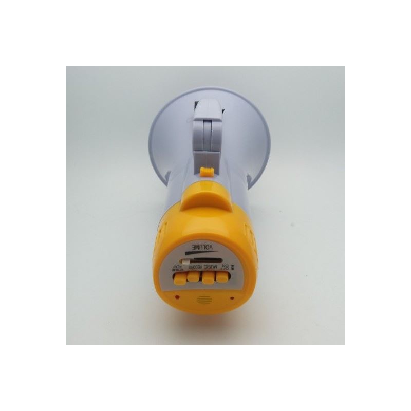 Megaphone speaker with recording function and 1500 mAh included battery.
