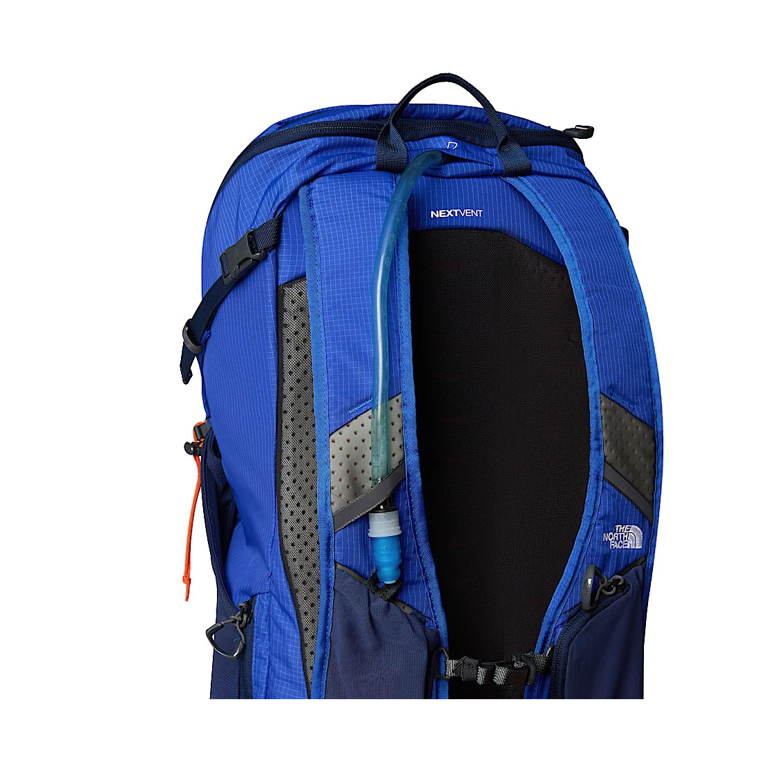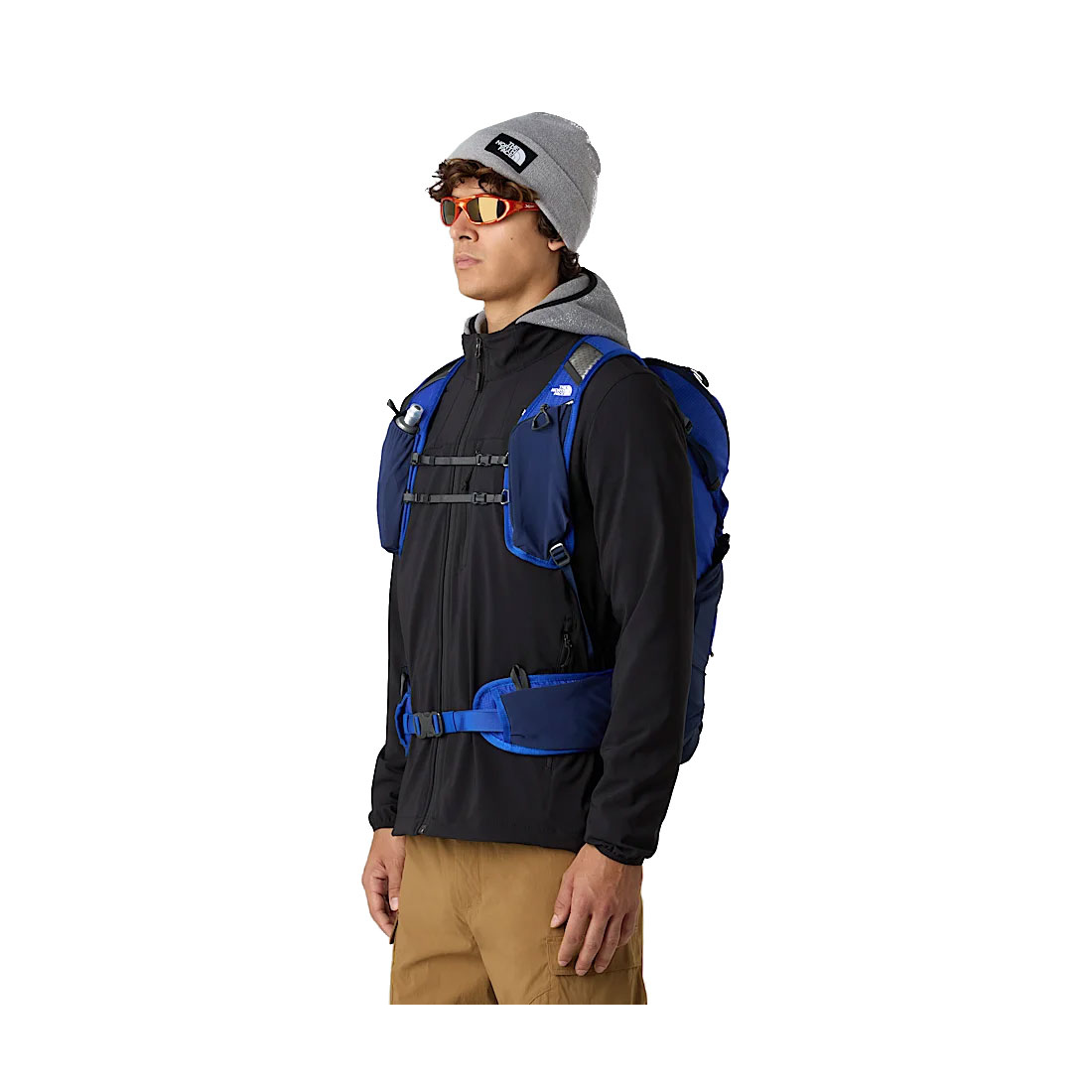 The breathable back panel and shoulder straps inspired by The North Face's iconic trail run vest have a comfortable contoured fit that allows you to move fast in the mountains, while convenient storage options ensure your phone, soft flask, keys and water bottles and easily accessible. Speaking of hydration, there's an internal water bladder pocket to keep you hydrated no matter how intense you hike. At only 760g, the fabric is incredibly light and easy to carry. The padded hip belt with pockets helps sustain the weight, too, which is perfect when lugging around heavy gear. And to help you save space when you have a lot to carry, side compression lets you cinch down your belongings, streamlining the whole thing.