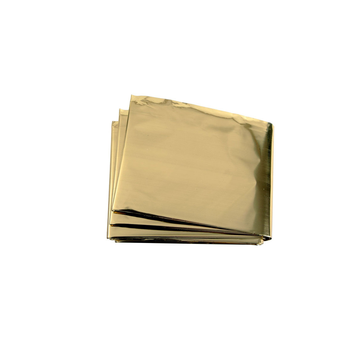 Rescue blanket with gold and silver layer. Complies with DIN regulation. Should not be missing from any car, hiking or travel luggage. To supplement your first aid equipment. Super small and extremely light.
