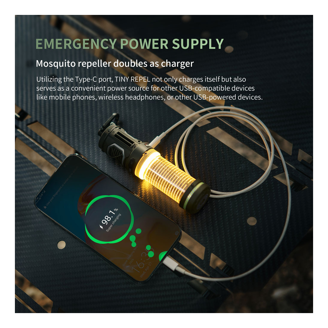 FLEXTAIL TINY REPELLER can be used as a power bank to charge your mobile device whenever you need a quick battery boost. Hang it on your backpack, carry it anywhere, and say bye to your “low battery anxiety”.