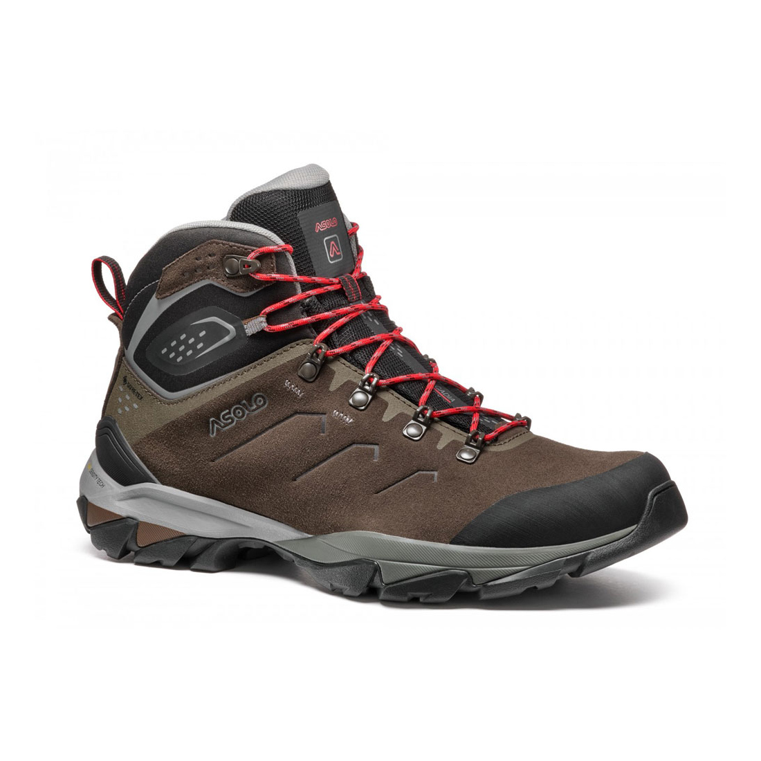 Water-resistant suede upper offers protection and comfort while the Gore-Tex Extended Comfort Footwear lining guarantees waterproofness and breathability. The mono-density Eva midsole offers the best stability, support, comfort and cushioning and a softer Eva is co-injected in the rear part for assuring a shock absorbption function. The Asolo Acadia outsole has a self cleaning design and it uses the Sigma Grip compound which guarantees the best traction, grip, durability. To complete the model a rubber toe cap for protection and the hardware lacing system for a fast and precise lace up.